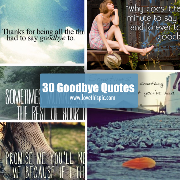 You are currently reading about 30 Goodbye Quotes. If you've found this helpful, please share 30 Goodbye Quotes on your favorite social media site, such as Facebook, Twitter, or Google+
